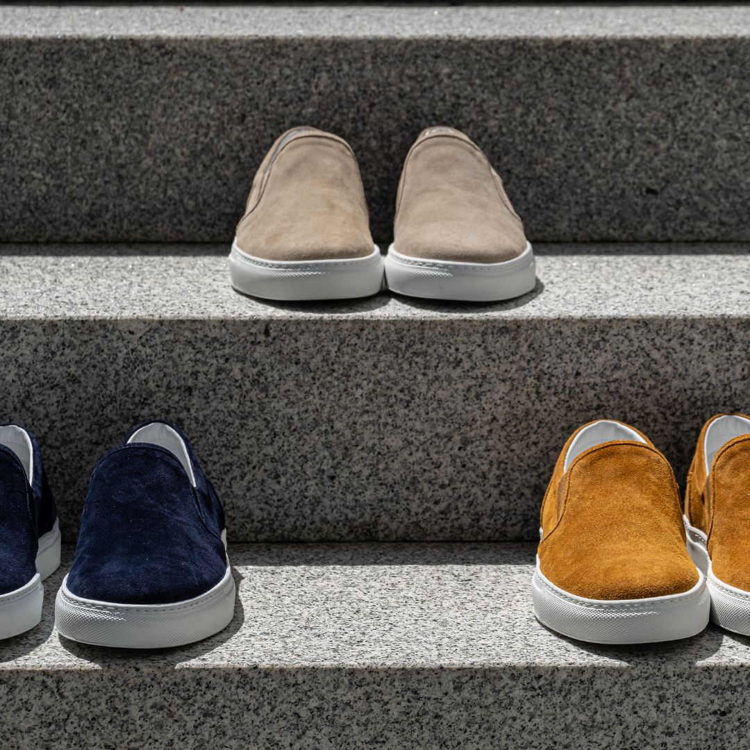 Casarotti embodies a culture of meticulousness that results in comfortable, durable, and fashionable shoes. All materials, from the natural rubber soles produced by Suolificio Maya to the Tuscan leather of Conceria Zabri, are sourced from a regional network that the family has been working with for decades. To produce our slip-on, the leather is carefully cut, formed, and hand stitched. Each step is done with great attention as we’ve witnessed while visiting the production site.